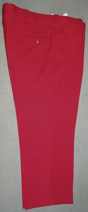 rote Tanzhose Bund versehen mit 7 Gürtelschlaufenvorne zwei Eingrifftaschenhinten zwei Eingrifftaschen mit Laschen zu schließen und weiße Perlmuttdruckknöpfenmade in USAMaterial:100 % PolyesterTOP Zustand