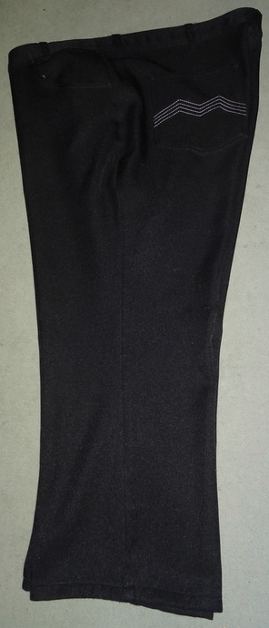 schwarze Tanzhose Bund versehen mit 9 Gürtelschlaufenvorne zwei Eingrifftaschenhinten zwei Eingrifftaschen die mit hellen Zick Zack Linien bestickt sindMaterial:100 % Polyesterguter Zustand
