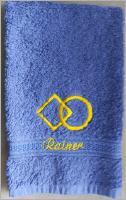 Squaredance Towel blau (TW-853) Neues besticktes, blaues Herrenhandtuch von Friesen Frottier Eingestickt wurden das Rounddancezeichen und der Name Rainer in gelb 8,00 EUR (zzgl. Versandkosten)