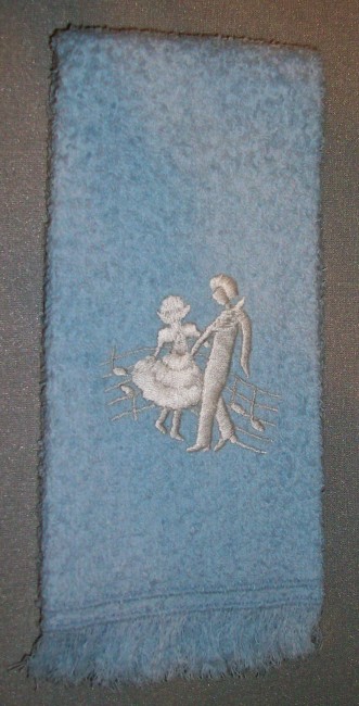 hellblau mit weissem, gestickten TanzpärchenNeu
