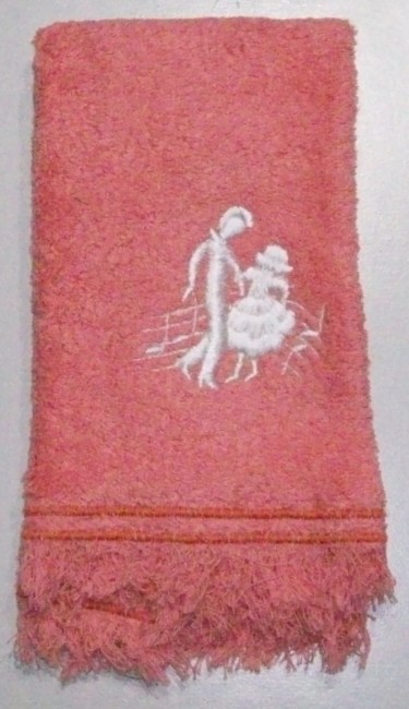 lachsfarbenes Handtucheingesticktes weisses TanzpaarNeu