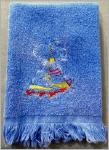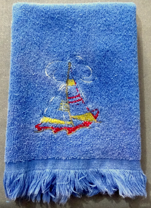 hellblaues Handtuch mit aufgesticktem SegelschiffchenMaterial: 100 % Cotton gebraucht, guter Zustand