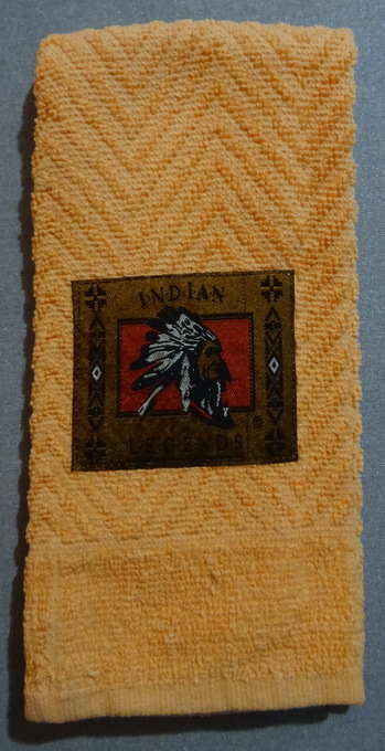 apricotfarbenes Handtuch mit aufgenähtem "Indian Legends" Label in braun, dunkelrot und mit Indianerhäuptling Material: 100 % BaumwolleNEU