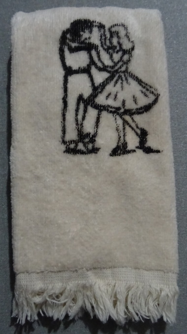 cremefarbenes Handtuch mit aufgedrucktem schwarzem TanzpaarMaterial: 100 % Cottonsehr guter Zustand