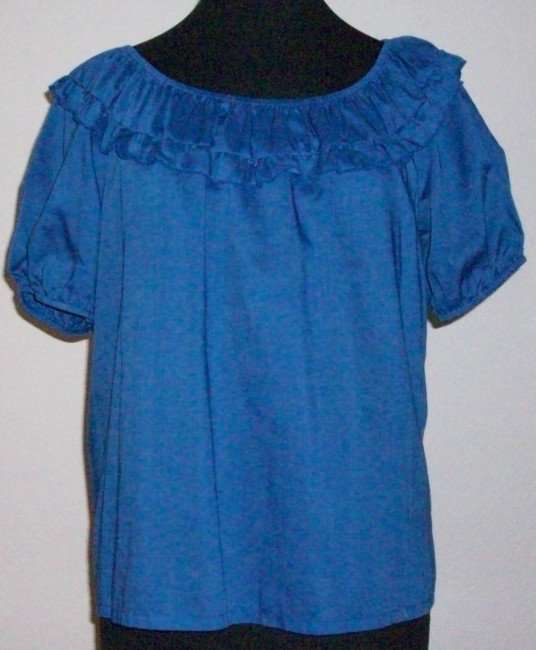 royalblaue BluseGrösse Petiterunder Halsausschnitt mit Gummizugpflegeleicht