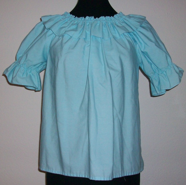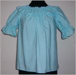 hellblaue BluseHalsausschnitt mit Gummizug8 cm breites Volantkurze Puffärmel mit Gummizugtopp Zustand