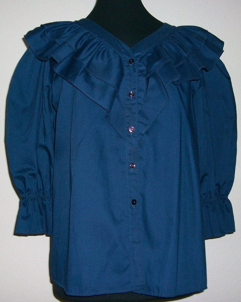 dunkelblaue Bluse mit Halbarmv-förmiger Ausschnitt mit 5 Knöpfen zu schliessenzweifaches Volant um den Ausschnitttopp Zustand