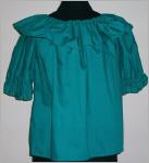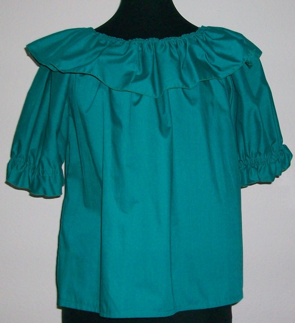 türkisgrüne Bluserunder Halsausschnitt mit Gummizug und 14 cm breitem Volantkurze Puffärmel