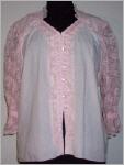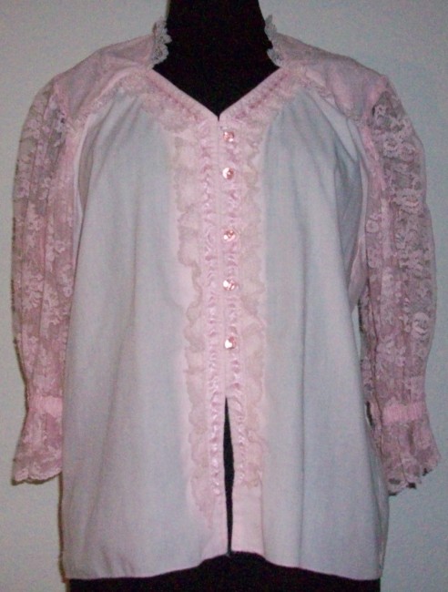 rosa Blusevorne geknöpftreichlich mit rosa Spitze verziertÄrmel aus edler Spitze