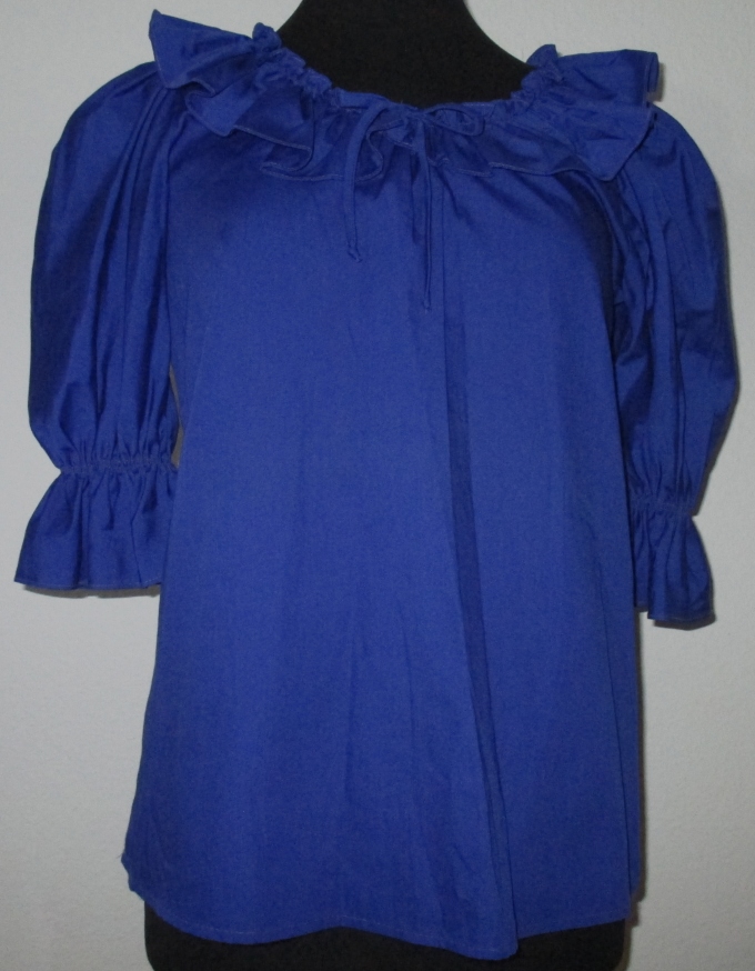 Farbe entspricht royalblaurunder Halsausschnitt mit 50 cm Reissverschluß hintenum den Halsausschnitt 8 cm Volant, vorne mit SchleifchenPuffärmel in HalbarmlängeGrösse PMaterial:65 % Polyester35 % CottonGuter Zustand!!!