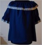 dunkelblaue Bluse mit U-Boot-Ausschnitt und Gummizug