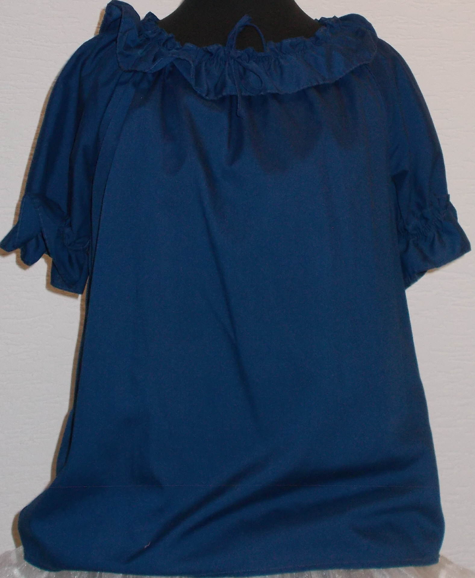 dunkelblaue Bluse der Marke Malco Modes Mod. 165 Gr. Mrunder Halsausschnitt verziert mit 6,5 cm Volant, vorne ein Schleifchenkurze Puffärmel mit 6 cm VolantMaterial:65% Polyester35% Cottonguter Zustand!