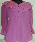 erikafarbene Bluse V-Ausschnitt vorne geknöpft mit doppeltem Vollant in 7 cm und 11 cm BreiteHalbarmärmel in 47 cm Länge, mit 9 cm Volant gerade geschnitten