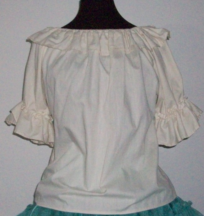 hellbeigefarbene Bluserunder Halsausschnitt mit Gummizug und 8 cm Rüschekurze Puffärmel mit 8 cm Rüscheguter Zustand