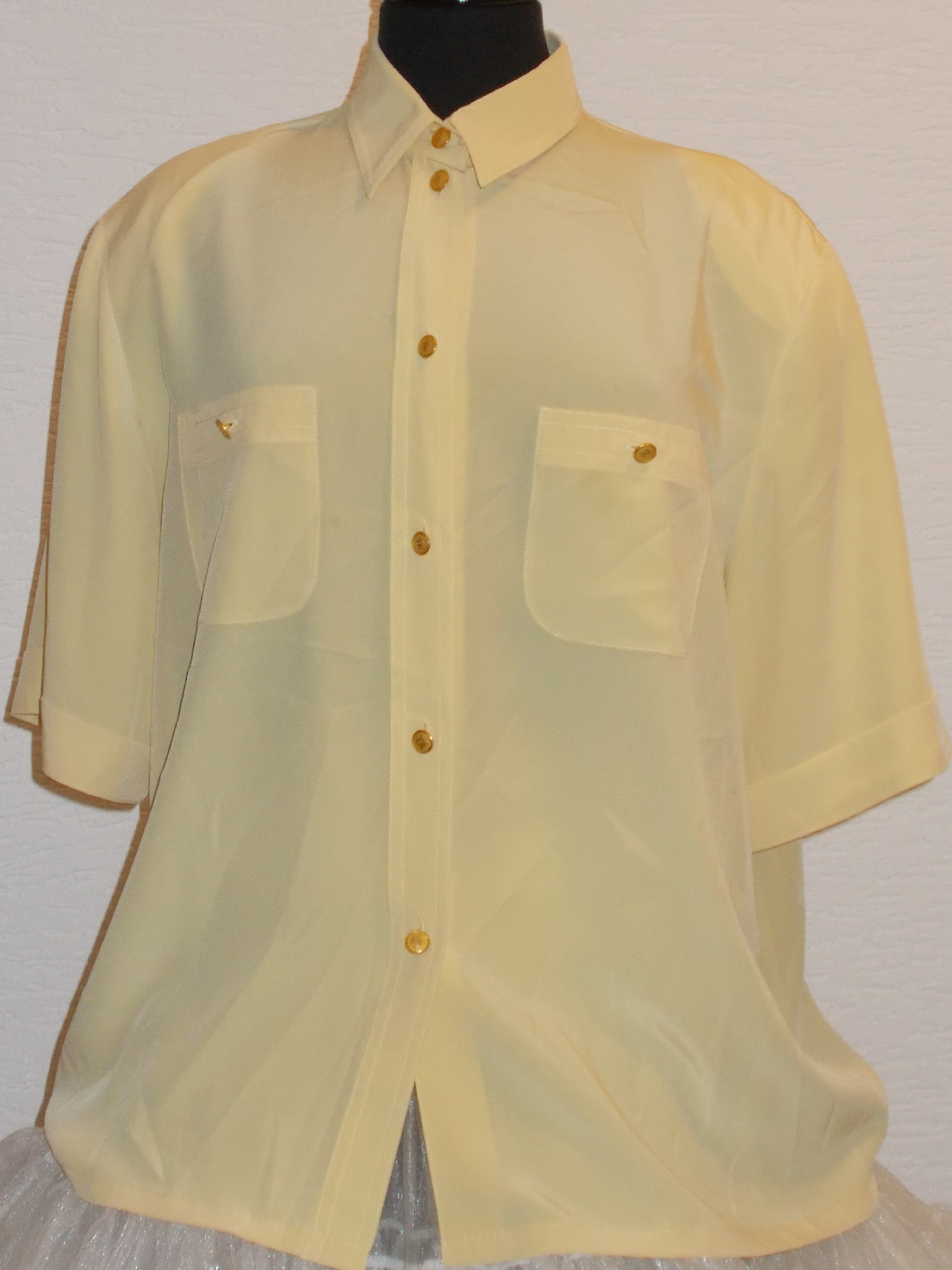 lagunagelbe Bluse der Marke Laura Berlucchi Gr. 422 aufgesetzte Brusttaschen, geknöpft mit goldenen Knöpfen mit Wappen, ebenso an den Brusttaschen2 SchulterposterKurzarmMaterial:100% Polyesterguter Zustand!