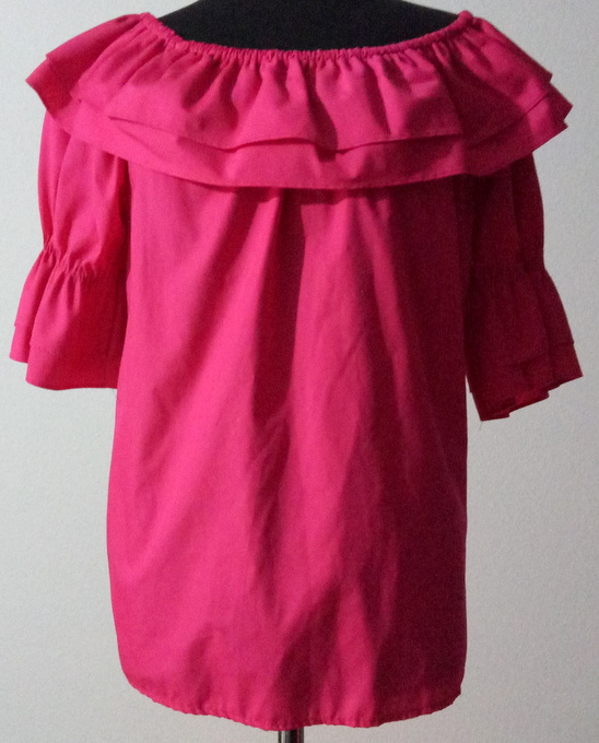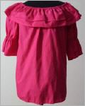 pinke Blusehalbrunder Halsausschnitt mit Gummizug verziert mit doppeltem Volant (10 cm, 11,5 cm) 33 cm kurze Puffärmelchen mit Gummibund verziert mit doppeltem Volant (7 cm, 8 cm)Material:65 % Polyester35 % CottonTOP Zustand