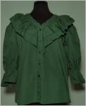moosgrüne Bluse "Malco Modes Mod 2333 Gr. MV-Ausschnittmit Doppelvolant verziertvorne geknöpft3/4 lange Ärmelguter Zustand65% Polyester, 35%Cotton