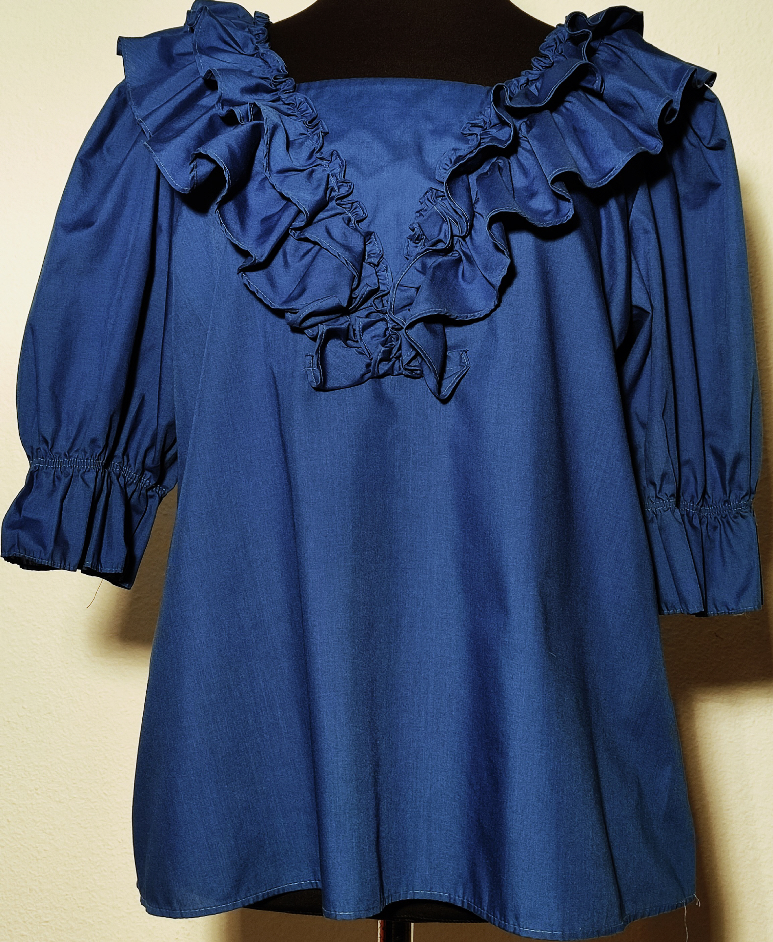 viereckiger Halsausschnitt das doppelte Volant ist in V-Ausschnittform angelegt das eine in 9 cm das andere in 6 cm