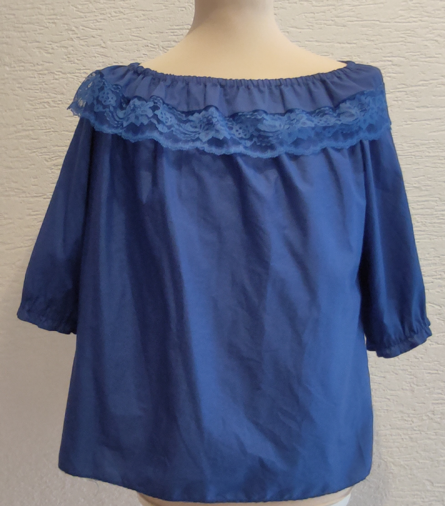 Bluse in royalblauder Halsausschnitt ist verziert mit 6cm breiter Spitzeguter Zustand