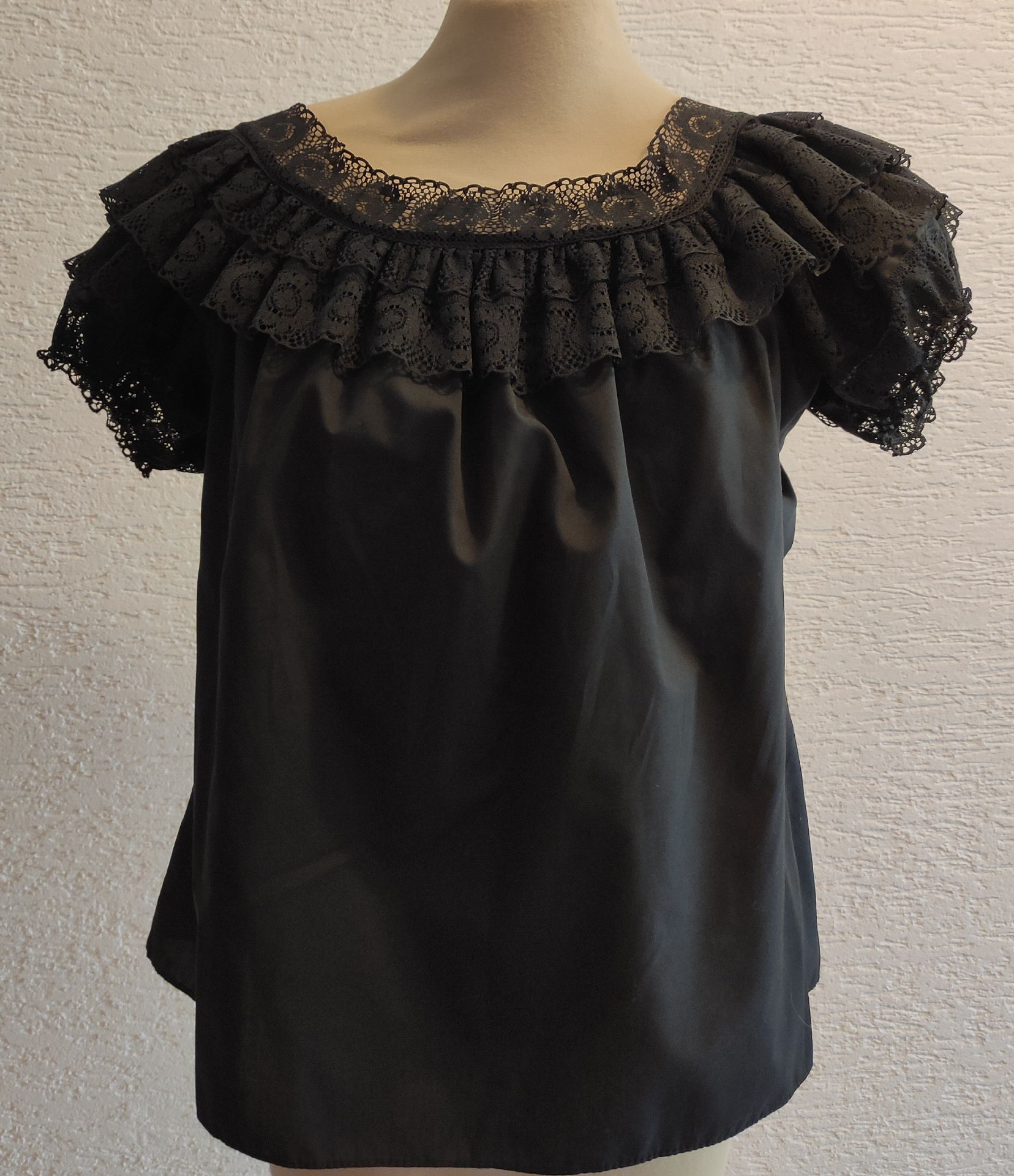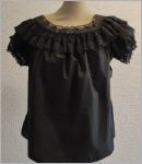 schwarze Bluse der Marke Square up Fashionweiter Camenausschnitt, verziert mit reichlich schwarzer Spitzekurze Puffärmelguter Zustand