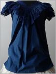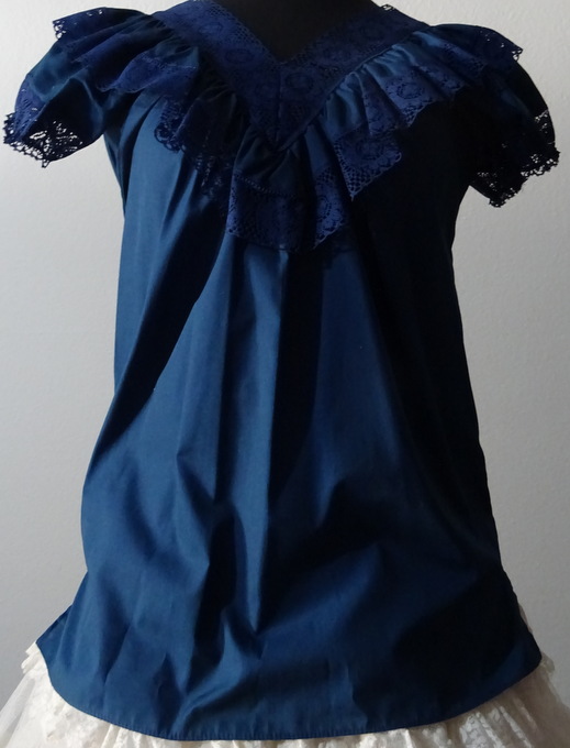 3 cm Volant, welches ebenfalls mit 5 cm breiter dunkelblauer Spitze verziert ist