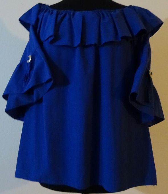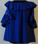 königsblaue Blusehalbrunder weiter Halsausschnitt mit Gummizug und 12 cm Volant33 cm Ärmelchen in Fledermausform, verziert mit je einem Concho, ebenfalls mit 11 cm VolantMaterial:MischgewebeNEU