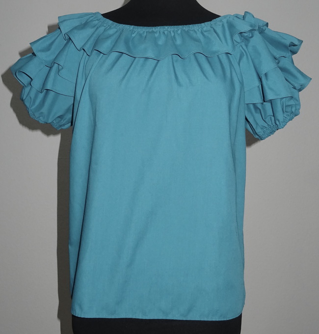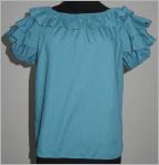 türkisfarbene BluseU-Boot Halsausschnitt mit Gummizug, verziert mit 8 cm Volant18 cm kurze Puffärmelchen mit Gummizug und dreifach VolantMaterial:MischgewebeTOP Zustand