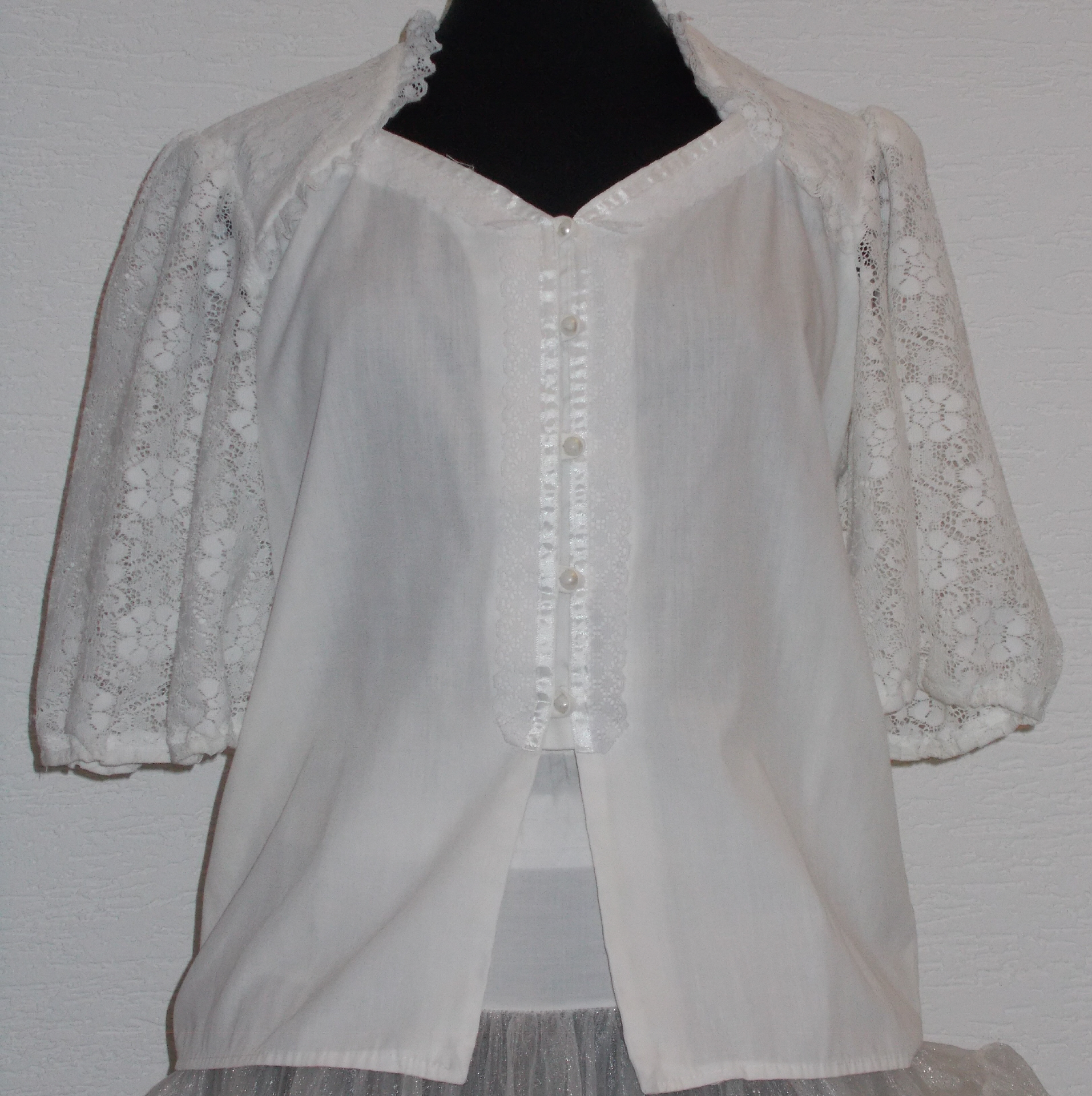 weisse Bluse old Stylevorne geknöpft mit Perlmuttknöpfen im Oberteil verziert mit edler weisser Spitzeauch die 33 cm Ärmelchen sind aus weisser Spitze TOP Zustand!
