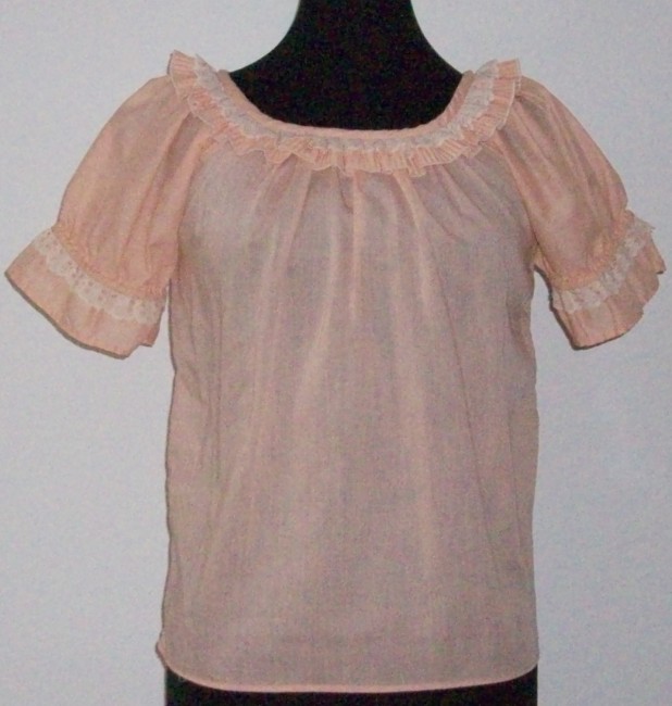 apricotfarbene BluseGrösse Smallrunder Halsausschnitt verziert mit kurzem Volant und weisser Spitzeebenso die kurzen Ärmelchenguter Zustand