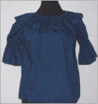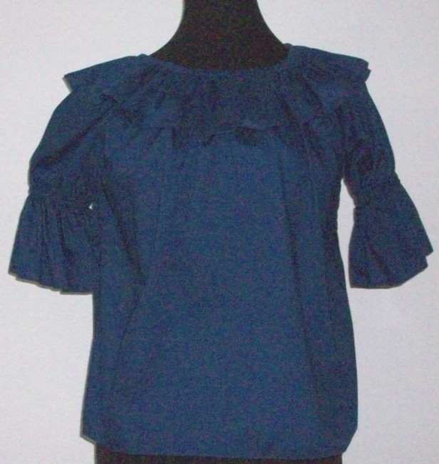 dunkelblaue BluseGrösse Petiteum den runden Halsausschnitt mit Gummizug ein 11 cm breiter Volantdie Puffärmel ebenfalls mit Gummizug und VolantNeu - Ausstellungsmodell65% Polyester, 35% Cotton