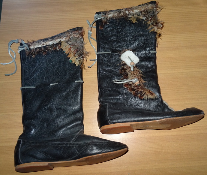 Farbe schwarzreich verziert mit IndianerschmuckSchafthöhe ca. 32 cmflacher Absatzechtes LederKunststoffsohleGröße: ca. 37 TOP Zustand