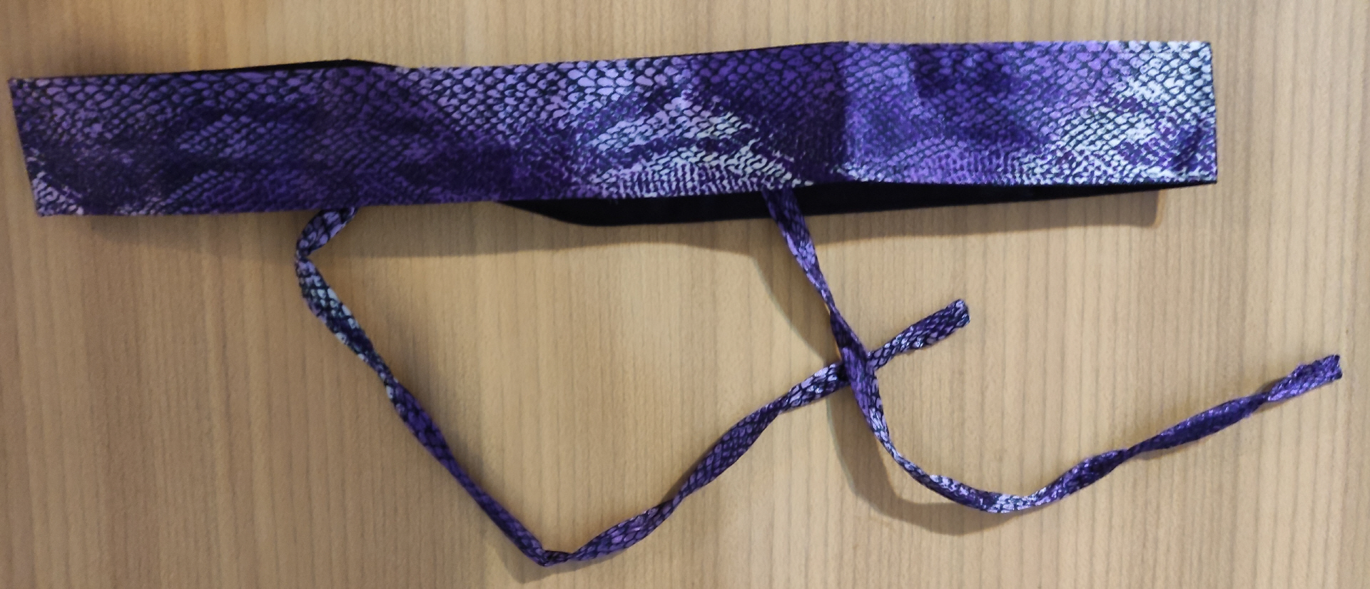 schöner weicher Bindegürtel mit Reptilmuster in lila, schwarz und creme sehr weiches Stoffmaterial Maße:Breite: 4 cm Länge: 74 cm bis etwa 95 cm (beliebig) Zustand wie neu