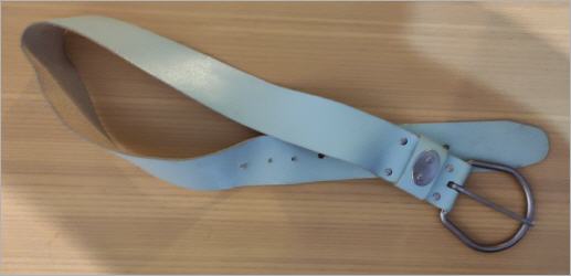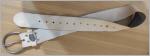 Kontingent 3 Echt-Ledergürtel in hellem beige, hellblau, pinksilberfarbene SchnalleMaße:Breite: 5,5 cm (beige); 5,0 cm (hellblau); 5,5 cm (pink) Gesamtlänge: 65 bis 95 cm (beige); 68 bis 87 cm (hellblau); 66 bis 92 cm (pink)Gebraucht
