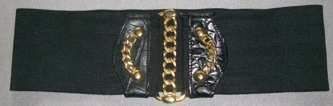 schwarzer Stretchgürtel mit goldfarbenem Verschlussvorne 2 aufgesetzte Lederteile mit goldfarbenen KettenNEU
