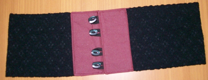 schwarzer Gürtel aus dehnbarer Spitzevorne und hinten dunkelroter Stoffeinsatzvorne mit 4 schwarzen KnöpfenNeu 65 % Polyester35 % Cotton NEU