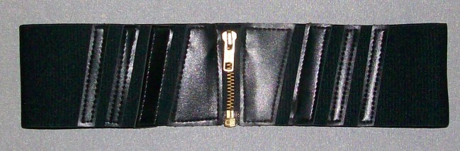 schwarzer Stretchgürtelvorne und hinten mit aufgesteppten Kunstleder-Applikationen vorne verschliessbar mit phantasievollem Messing-ReissverschlussNeu