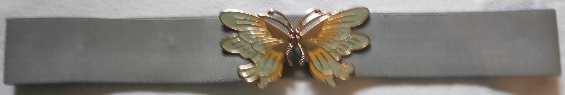 Grauer Stretchgürtel mit Schmeterlingschliesekann an der Schliesse innen variabel etwas weiter oder enger gemacht werdenMaße:Breite 5 cm Länge 90 cm bis 100 cmNeu