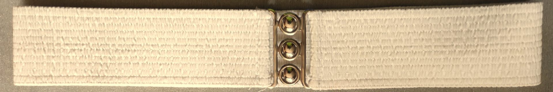 Cremefarbener Stretchgürtel Square up Fashion Gr. Msilberfarbene SchliesseBreite 5,5 cmLänge 83 cm bis 98 cmMaterial:65% Polyester35% Cottonguter Zustand