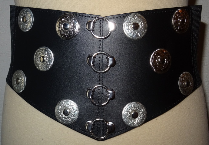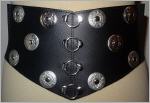 schwarzer Ledereinsatz mit 10 silberfarbenen Medaillons verziert