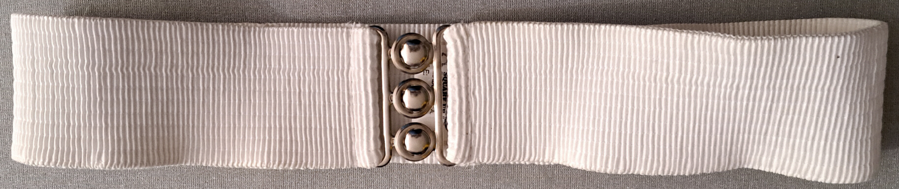 Weißer Stretchgürtel mit silberfarbener Schliese der Marke Malco Modes CB2 XLBreite 5,5 cm Länge: maximal 84 cm bis 100 cm gebrauchter Zustand