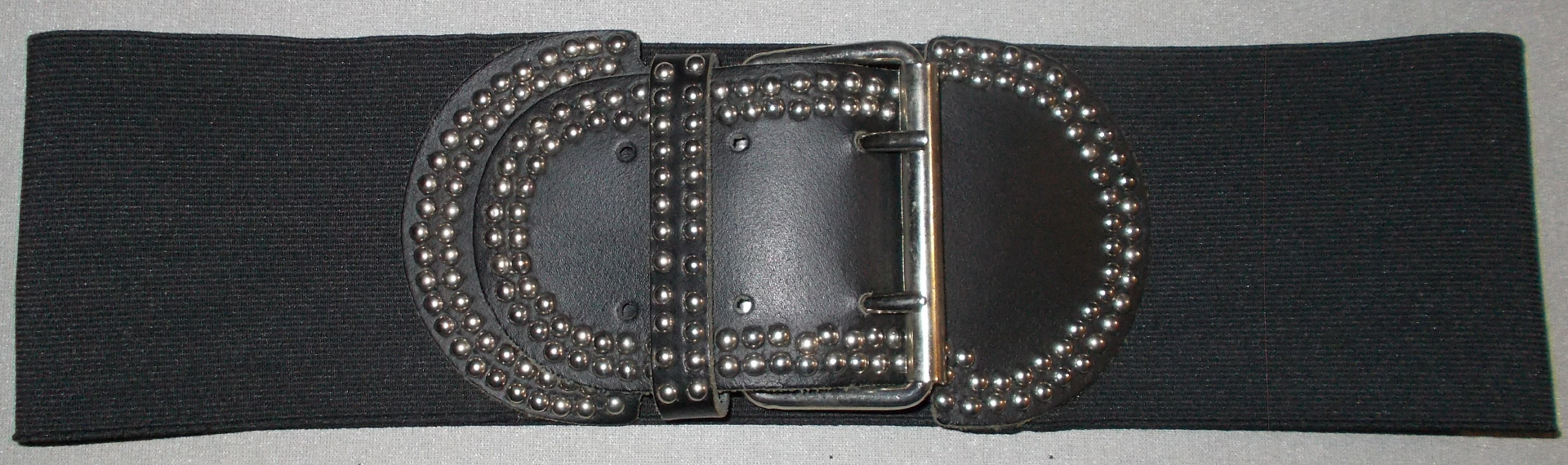 schwarzer Stretchgürtel mit aufwendigem Verschluss aus Kunstlederaufwendig mit zahlreichen Nieten verziertNEU!