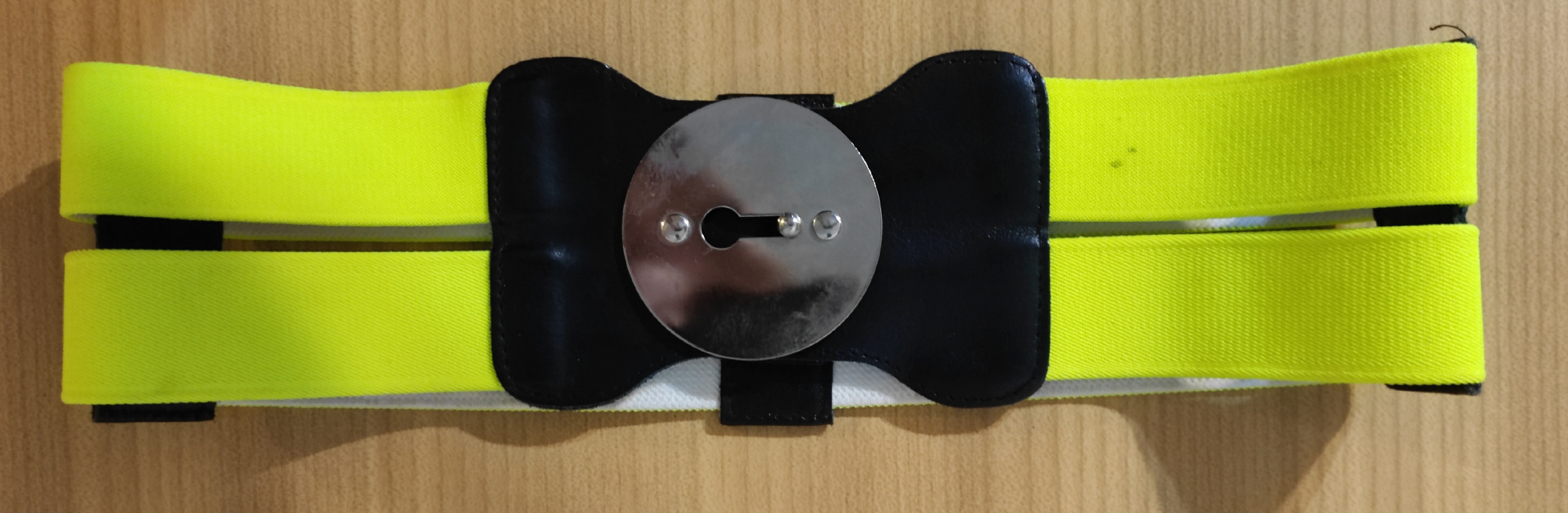 seltener aufwendiger Damenstretchgürtel die stretchteile sind in neo Gelb, die schwarzen einsätze sind aus Echtleder Runde, silberfarbene Schnalle Maße: Breite: 7,5 cm Länge: 68 cm bis 74 cm