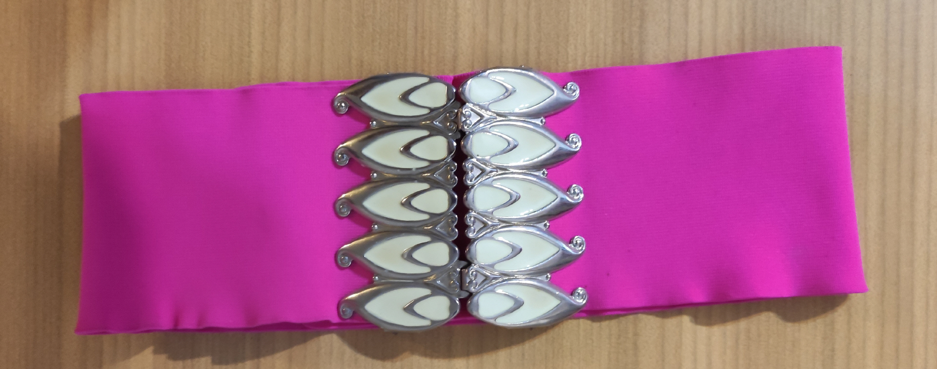 Durch die aufwendige silber und cremefarbene Gürtelschnalle lässt sich der Gürtel beliebig enger machen Maße:Breite 9,5 cm Länge: beliebig einzustellen, maximal 72 cm
