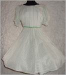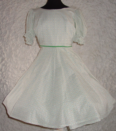 weisses Kleid mit feinen Blumenrankenhinten 39 cm Reissverschlussdas Ober- und Unterteil ist mit einer grünen Borte unterteiltdas Oberteil ist komplett gefüttertPuffärmelchen 29 cm