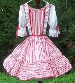 Grösse S rot/weiss gestreift, weisse Ärmel mit weisser Spitze Reissverschluss im Rücken