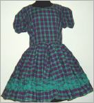 pflaumenblau/türkis kariertes Kleidmit aufwändiger Perlenborte um den Halsausschnitt und 9,5 cm Spitze oberhalb des SaumsPuffärmelchenhinten 49 cm Reissverschluss