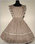 braun-weiss kariertes Kleid, Oberteil komplett gefüttertOberteil verziert mit 9cm Volant und weisser Spitzehinten 54cm Reisverschlussweitschwingender Rock mit 18 cm Volant und weisser SpitzeMaterial:Mischgewebesehr guter Zustand