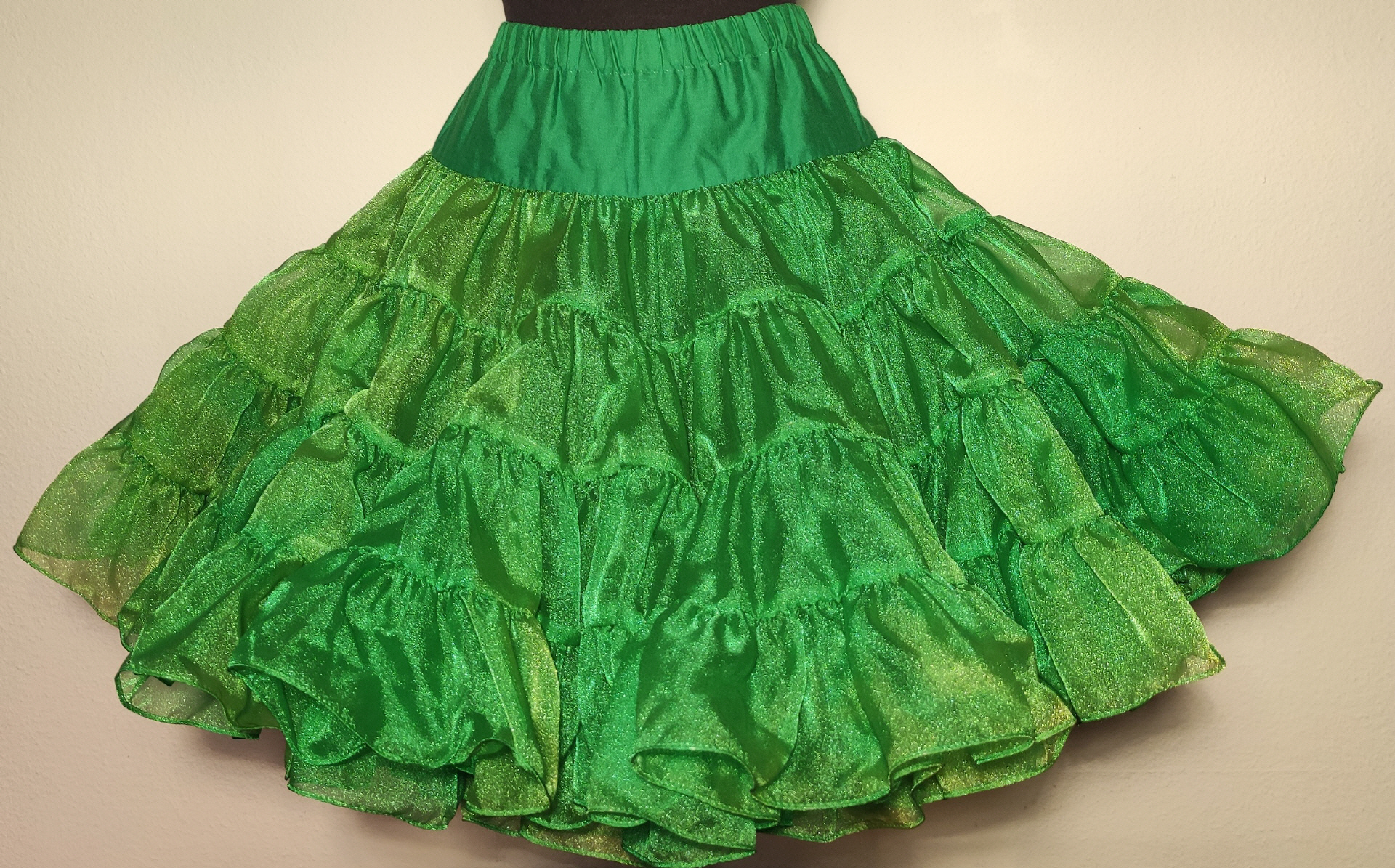 Crystal-Petticoat in grün2-lagig, 4-stufigausladendhat in der untersten Stufe teilweise leichte Verfärbungen, die eigentlich wie gewollt aussehenguter Zustand100% Nylon