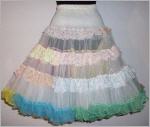das weisse Net-Teil ist reichlich mit farbiger Spitze verziert 2-lagig (die untere Lage ist aus feinem Organdy zur Schonung der Strumpfhose) die Fluffy-Rüsche an jeder Lage wechselt - wie auch die Spitze - in den Regenbogenfarben an ein paar Stellen wurden kleine Reparaturen vorgenommen