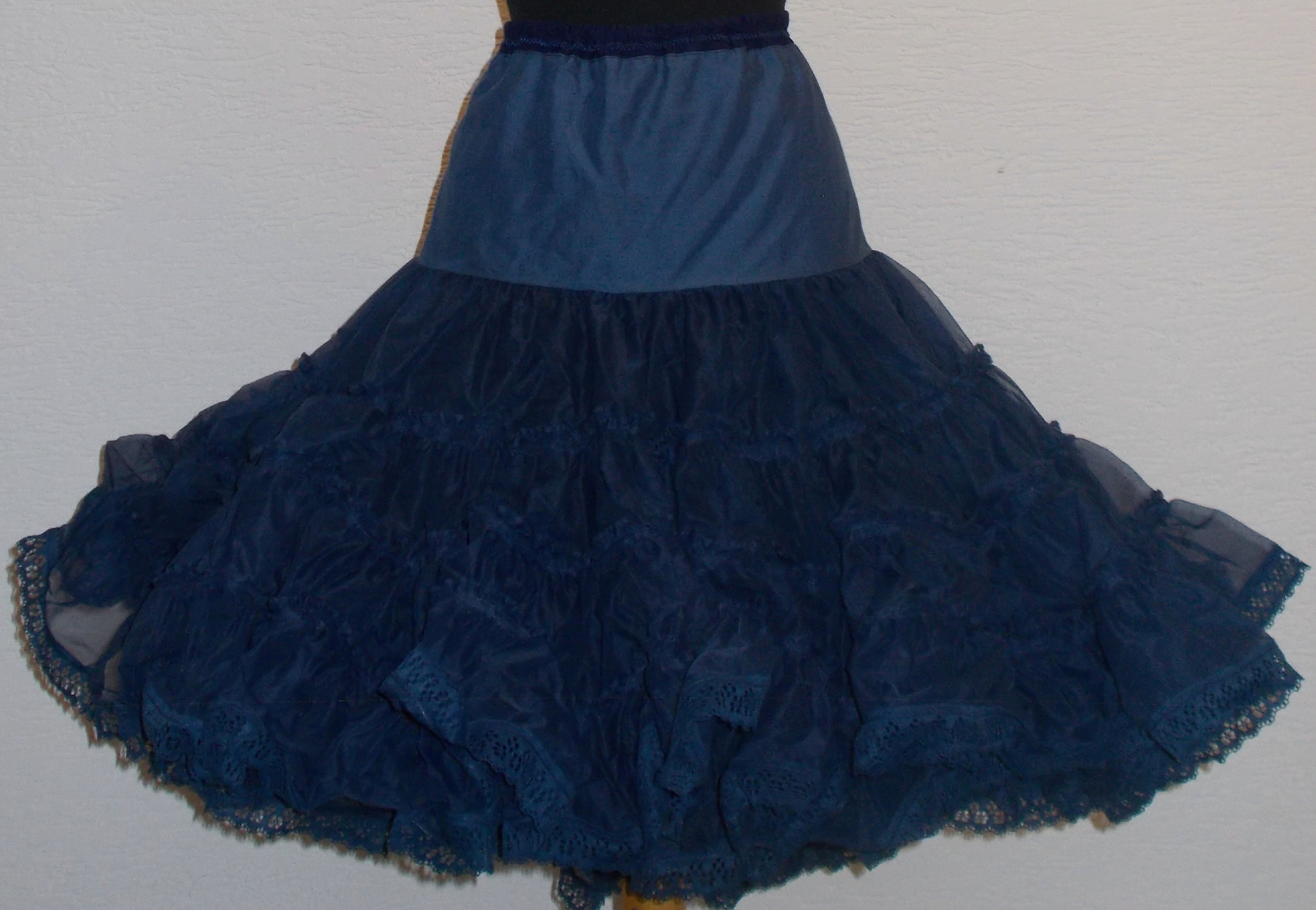 dunkelblauer Petticoat unten verziert mit 3 cm edler Spitze2-lagig, 4- stufigguter Zustand